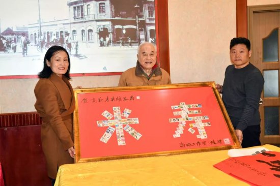 張鐵人、司海英、洪琥、紀向武、劉正信等書畫家向高翔老英雄贈送了書畫作品,海軍集郵研究會贈送了用百余張郵票精心制作的“米壽”郵匾,春和樓向高翔老英雄敬獻了“百歲壽星桃”和“春和樓創(chuàng)立128年精品禮盒”。