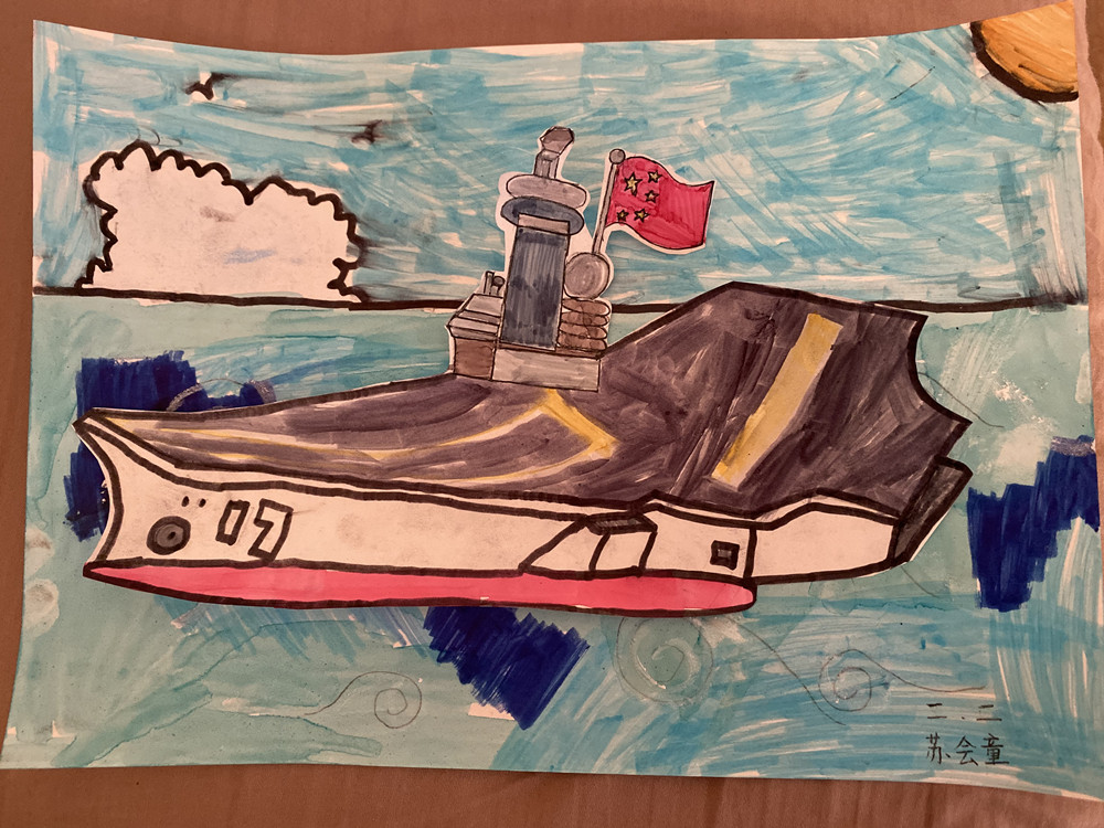蘇會童:通過學(xué)習(xí),我知道了山東艦是我國第一艘自主研發(fā)的國產(chǎn)航空母艦。作為一名山東的少先隊員,我感到無比驕傲和自豪!我想對解放軍叔叔說:親愛的解放軍叔叔,謝謝你們帶來和平,我要向你們學(xué)習(xí)堅強、不怕困難的精神!