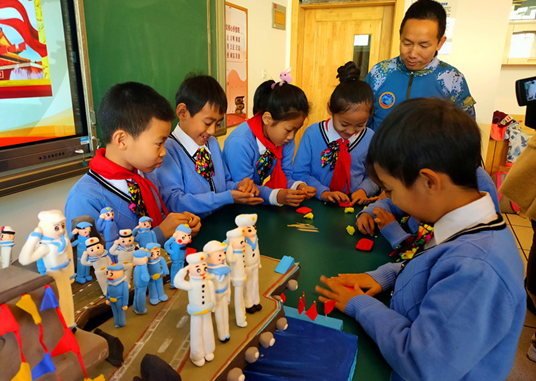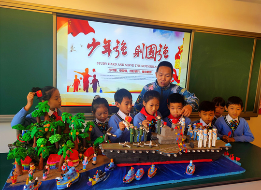 結(jié)合學(xué)校特色課程——面塑,隊員們通過自己動手制作航母上的飛機等模型,了解到我們的國防軍事,培養(yǎng)了愛國情感,這既是一次傳統(tǒng)文化體驗,也是一次愛國主義教育?!?/p>