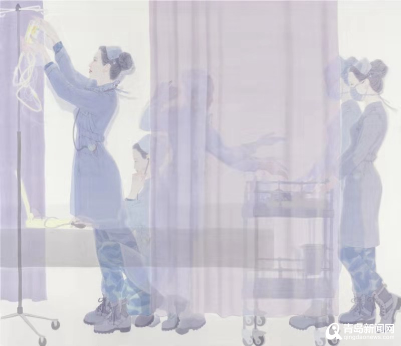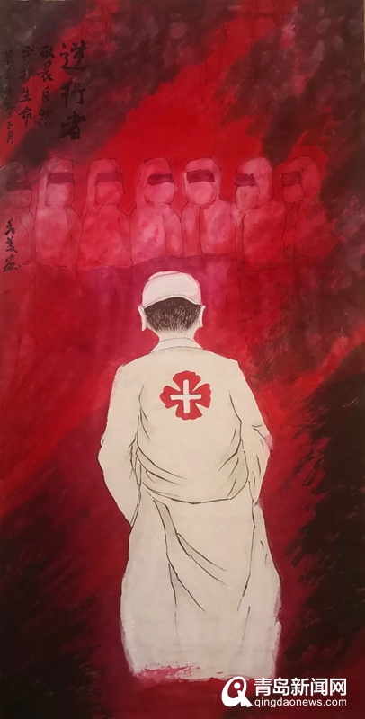 青島畫院的書畫家們用自己的畫筆描繪醫(yī)務人員奔赴一線、馳援武漢,社會各界捐款捐物、大愛無疆,人民群眾同心協(xié)力、守望相助,基層干部值班值守、排查服務等美術作品,集中呈現(xiàn)出這個特殊時期的精神圖譜。