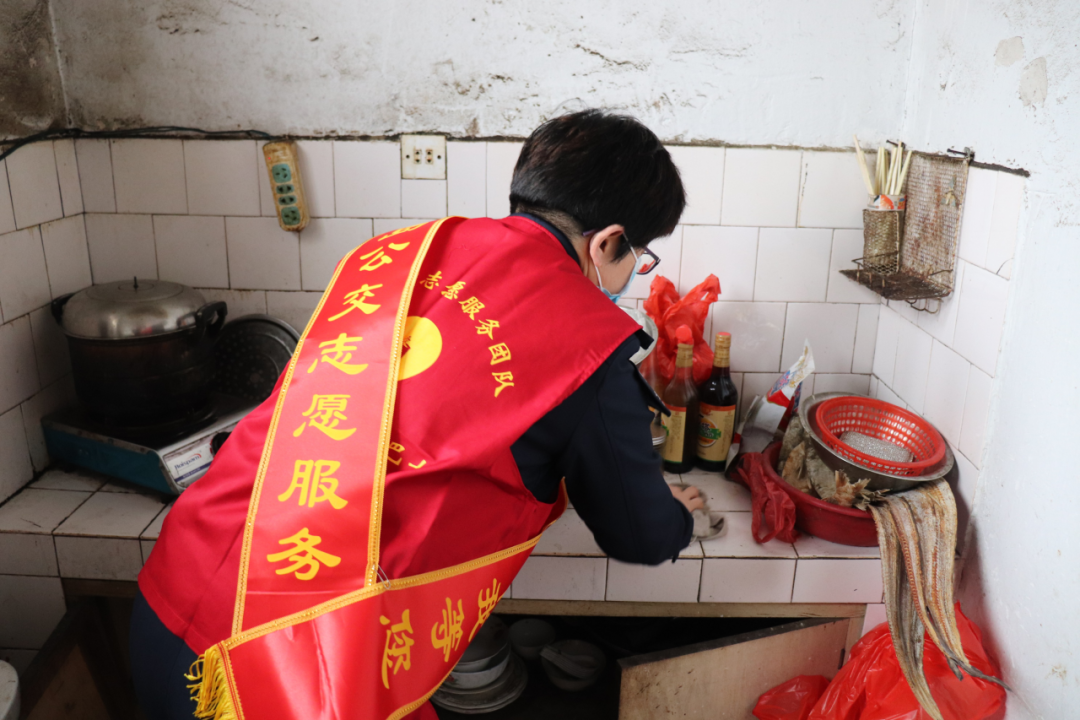 83歲的臧大爺獨居一人生活,家庭生活十分困難,疫情防控讓臧大爺在家長時間沒有出門,廚房衛(wèi)生較差,房間物品擺放雜亂,志愿者進(jìn)屋挽起袖子就進(jìn)行打掃。志愿者王群在廚房擦洗鍋臺油跡,洗刷鍋碗瓢盆,將醬料瓶擺放整齊,洗手盆也擦拭一新。