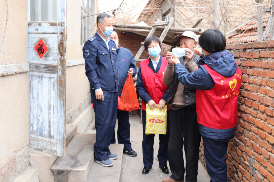 大家?guī)еu蛋、餅干和水果來到嶗山區(qū)北宅街道溝崖社區(qū)臧大爺家探望,并幫助打掃院內(nèi)和房屋衛(wèi)生,整潔家園,讓老人十分感動。