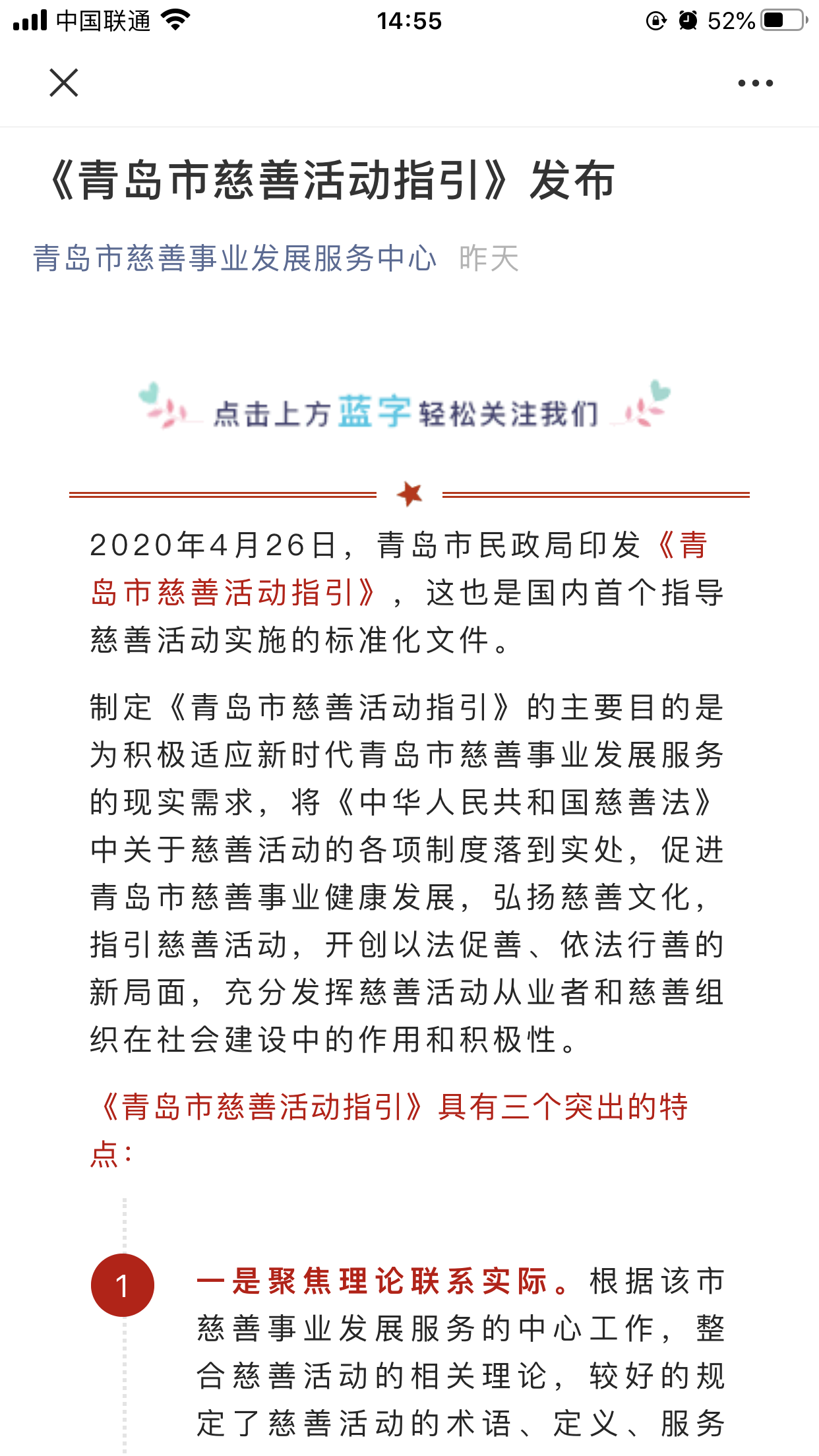 青島民政微信公眾號(hào):《青島市慈善活動(dòng)指引》發(fā)布