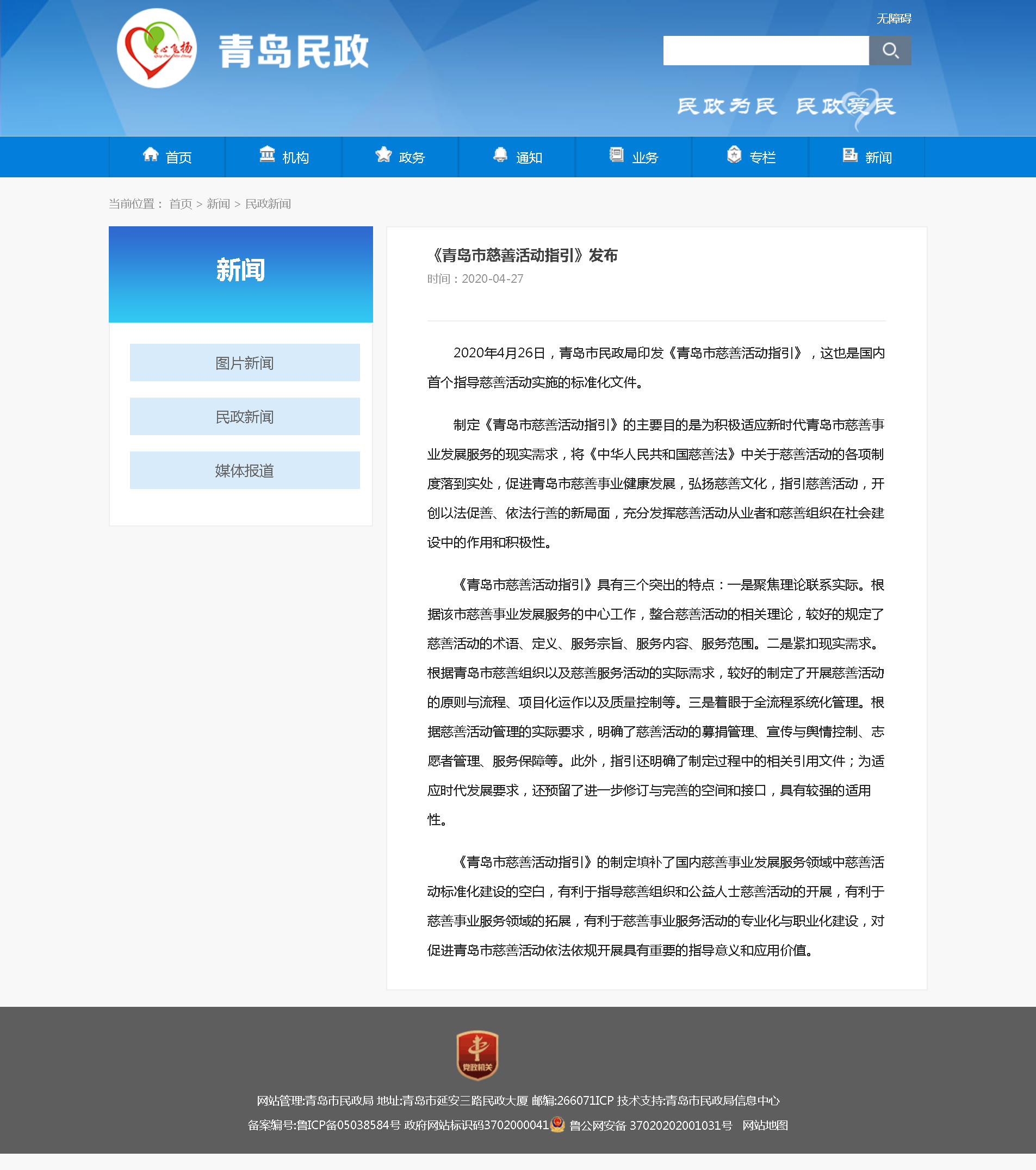 青島民政官網(wǎng):《青島市慈善活動(dòng)指引》發(fā)布