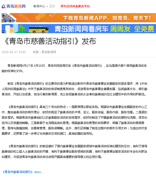 青島新聞網(wǎng):《青島市慈善活動(dòng)指引》發(fā)布