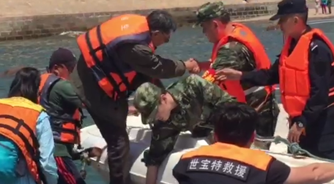 2018年5月,棧橋東側(cè)發(fā)生險情,兩名游客在礁石上游玩時,因沒有注意漲潮,被困在離岸邊100米遠的礁石上,得知后我?guī)ьI(lǐng)4名隊員駕駛兩艘快艇前往營救,到達現(xiàn)場后,發(fā)現(xiàn)救援行動十分困難,因為礁石附近有急流和漩渦,如果沒有好的駕駛水平,很容易出現(xiàn)船毀人亡,憑借多年的駕駛經(jīng)驗,帶領(lǐng)兩名隊員靠近礁石,將兩名游客安全轉(zhuǎn)移到船上,救援成功。