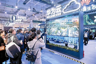 在青舉辦的華為中國(guó)生態(tài)伙伴大會(huì)上,嘉賓們?cè)谟^看《華為云生態(tài)青島行動(dòng)計(jì)劃》。本報(bào)資料照片