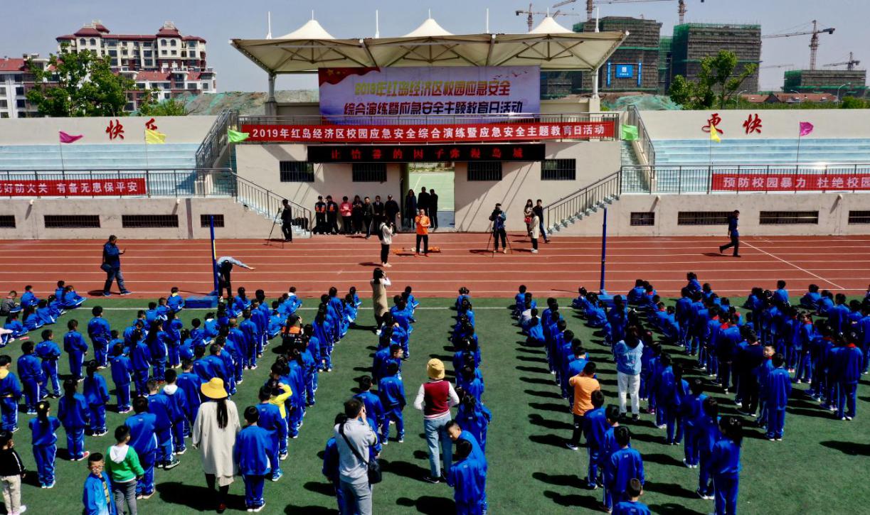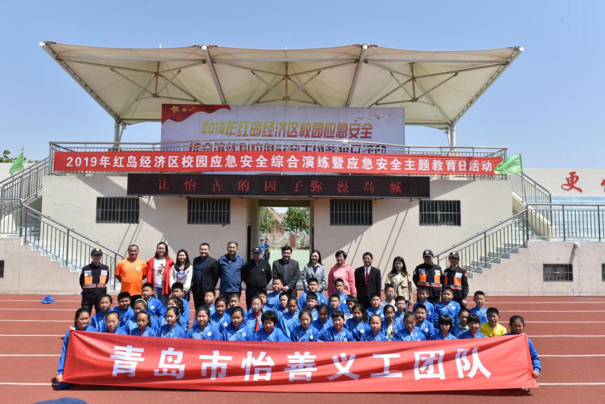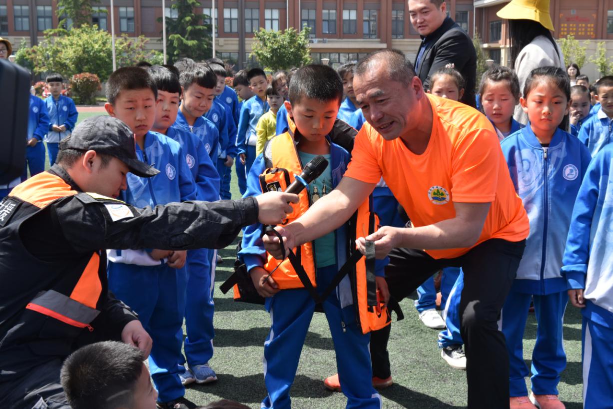 青島市救生協(xié)會的志愿者為紅島中心小學的師生們