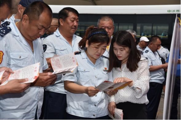 青島市慈善事業(yè)發(fā)展服務(wù)中心工作人員向嶗山巴士職工發(fā)放《慈善法》宣傳折頁