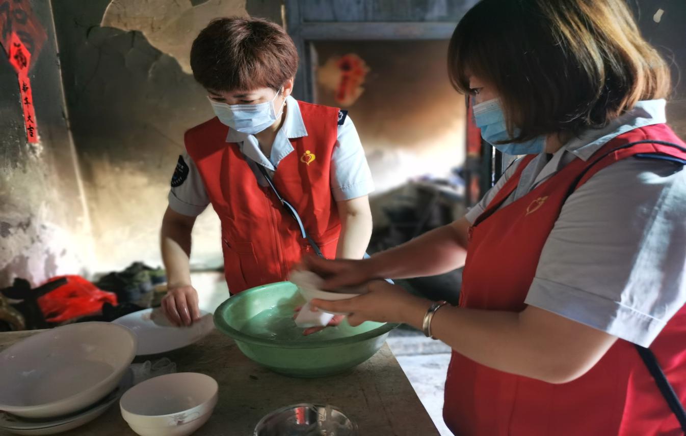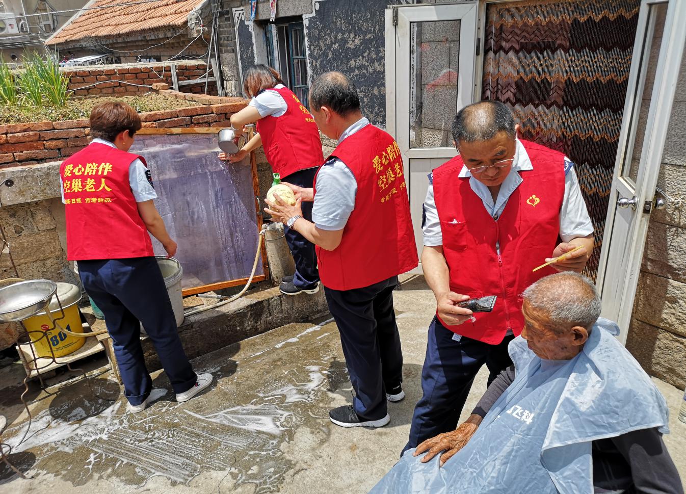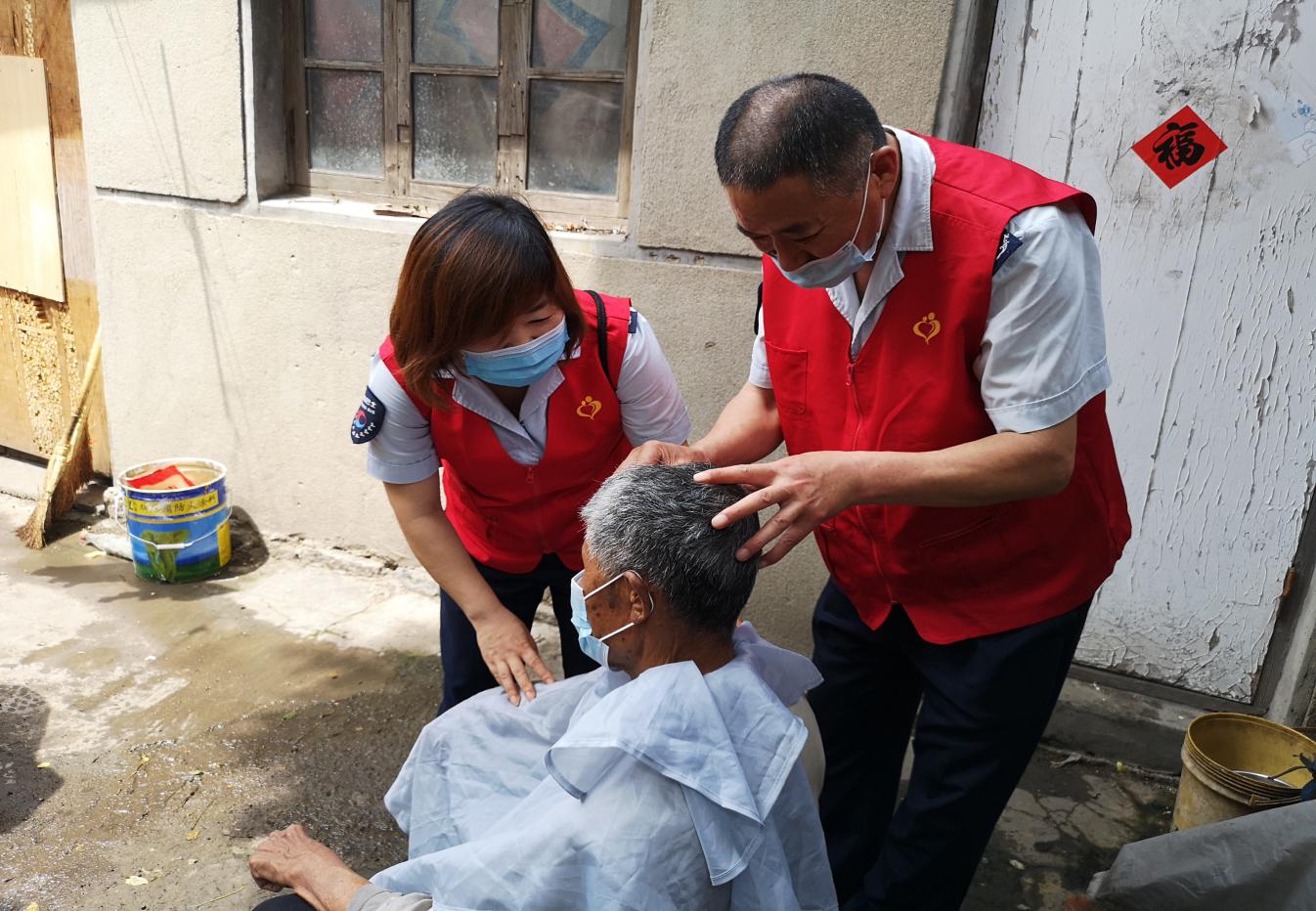 隨后,志愿者們一起來到了 80歲的王祝才大爺家中,老人正坐在院里曬太陽,一進(jìn)門,志愿者們便開始分工忙碌,掃地、擦桌子、洗刷碗筷、為王大爺理發(fā),大家忙的不亦樂乎。志愿者們看見老人最近消瘦了不少,叮囑王大爺天熱一定要按時(shí)吃飯。