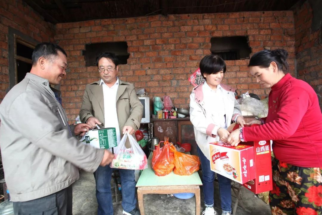 張雪梅(右二)和丈夫(左二)看望王明明一家
