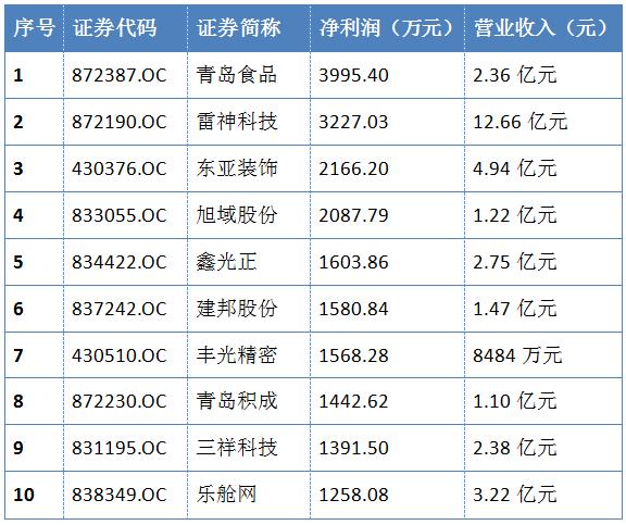 青島84家新三板企業(yè)“排座次”,9家企業(yè)營(yíng)收過億,青島食品最賺錢