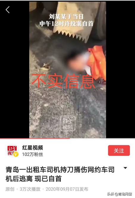 “豫視頻”為博取網民眼球,未經核實使用“青島的哥刀砍網約車司機,被摁地上大喊活著死了沒區(qū)別”為標題,并在發(fā)布的視頻中采用剪輯的方式加入一段某男子被摁在地上視頻。“紅星視頻”發(fā)布的視頻中,同樣采用剪輯的方式加入一段某男子被摁在地上視頻。上述情況與案件事實嚴重不符!