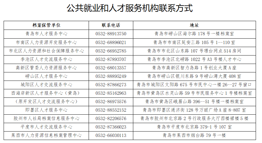 友情提示:青島生源師范類高校畢業(yè)生檔案可撥打生源所在區(qū)(市)公共就業(yè)和人才服務(wù)機(jī)構(gòu)電話查詢。2018屆及之前畢業(yè)的示范類高校畢業(yè)生檔案可撥打各區(qū)(市)教育(體)局電話查詢。