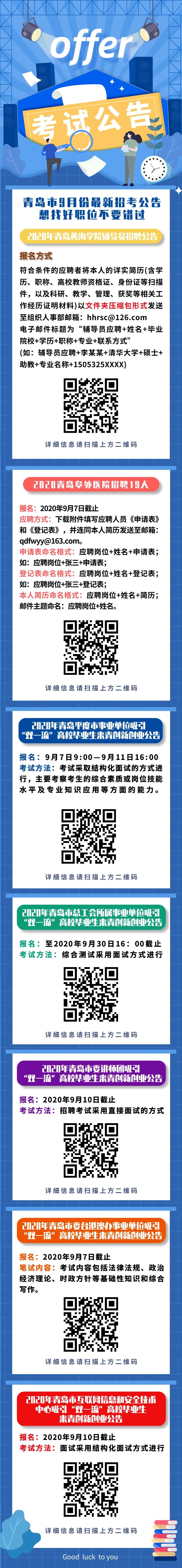 青島新聞網(wǎng)9月17日訊 9月最新招聘公告來啦!