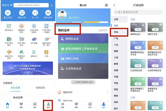 青島新聞網(wǎng)10月19日訊 近日,省司法廳順利完成全省律師執(zhí)業(yè)證、司法鑒定人執(zhí)業(yè)證、公證員執(zhí)業(yè)證等10類證照42358條數(shù)據(jù)在山東省電子證照系統(tǒng)的數(shù)據(jù)歸集工作,律師、司法鑒定、公證、基層法律服務(wù)、等法律服務(wù)行業(yè)從業(yè)人員、執(zhí)業(yè)機(jī)構(gòu)的證照在“愛(ài)山東”APP實(shí)現(xiàn)了亮證功能。證照持有人只要通過(guò)手機(jī)下載“愛(ài)山東”APP,登錄“我的證件”版塊,即可申請(qǐng)生成電子證照。社會(huì)公眾也可通過(guò)電子證照生成的二維碼進(jìn)行證照核驗(yàn),效力等同于實(shí)體證照。