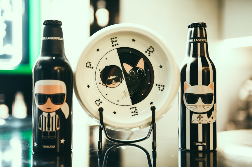 前不久,青島啤酒與KARL LAGERFELD品牌以“繆斯”作為核心概念,重新設(shè)計(jì)夜貓子啤酒瓶身,延續(xù)之前夜貓子系列的黑色瓶身,輔以KARL LAGERFELD品牌條紋、星星等元素,并分別印上Karl Lagerfeld和愛(ài)貓Choupette Lagerfeld的經(jīng)典圖案。