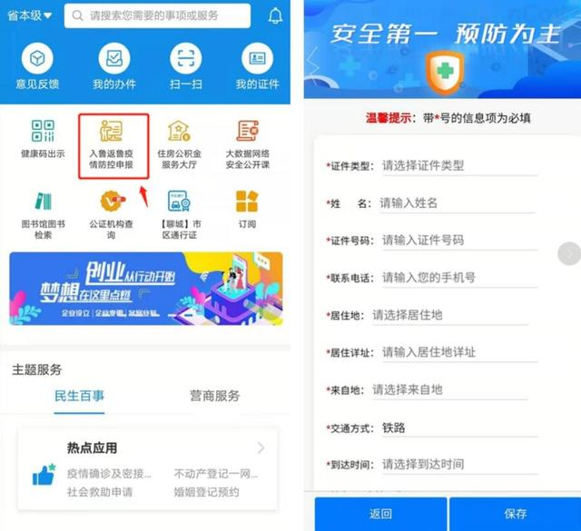 為提高疫情防控工作效率,省大數(shù)據(jù)局聯(lián)合省公安廳依托省移動政務(wù)服務(wù)總門戶“愛山東”APP,上線了“入魯返魯疫情防控申報”應(yīng)用,為入魯返魯人員提供信息自主申報渠道,做到科學預(yù)防、精準服務(wù)??靵硪黄鹂纯慈绾尾僮靼?!