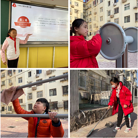 班級宣講、校園勞動、社區(qū)打掃衛(wèi)生,處處可見“小雷鋒”的身影。身體力行做實事,是對雷鋒精神最好的詮釋。