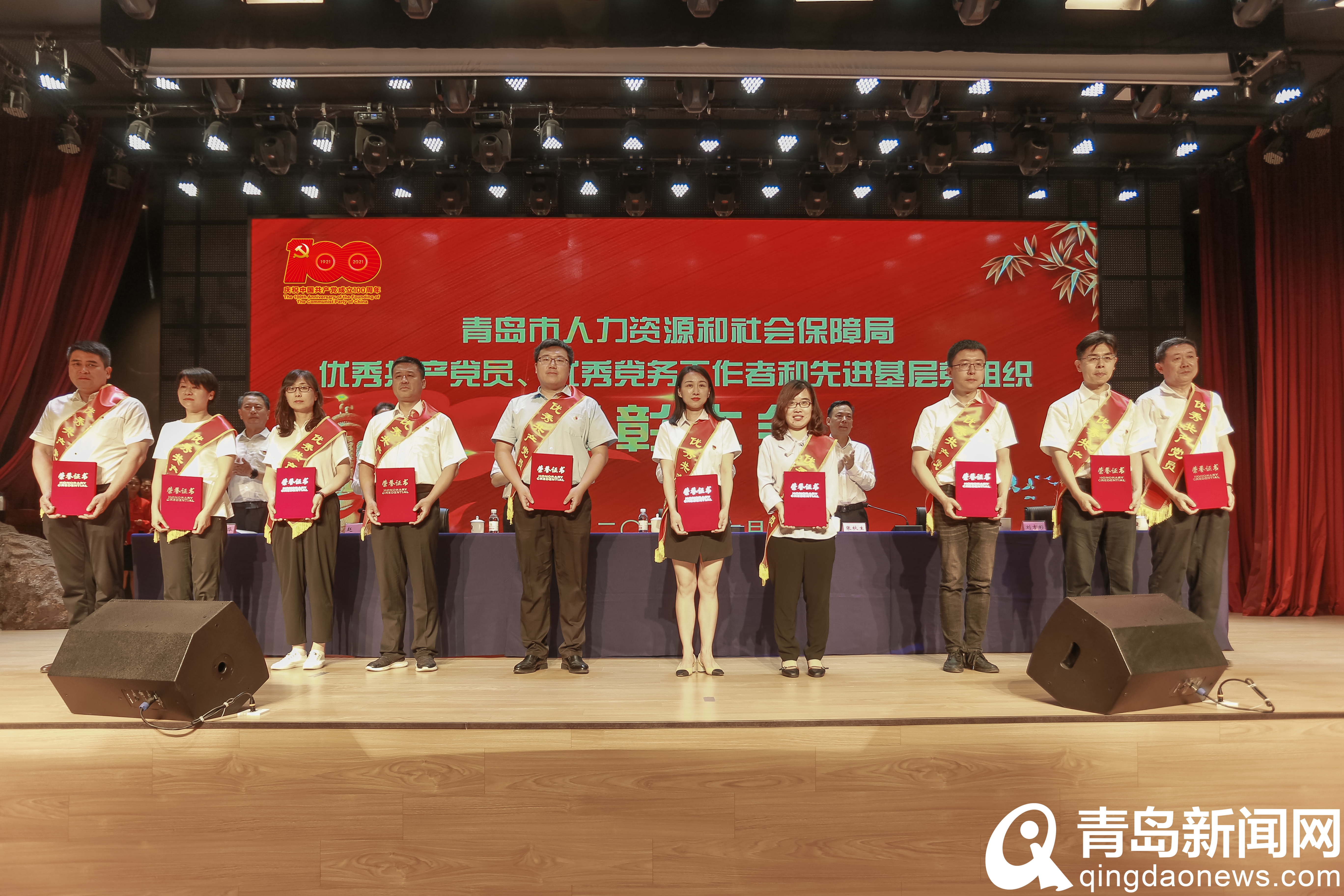 與會(huì)領(lǐng)導(dǎo)為受到表彰的優(yōu)秀共產(chǎn)黨員、優(yōu)秀黨務(wù)工作者和先進(jìn)基層黨組織頒發(fā)榮譽(yù)證書和獎(jiǎng)牌;青島市委組織部副部長,市人社局黨組書記、局長胡義瑛同志作了講話,他強(qiáng)調(diào),要在緬懷黨的豐功偉業(yè)中,始終堅(jiān)守忠誠之心,續(xù)寫愛黨建黨新篇章;在謳歌黨的豐功偉業(yè)中,始終堅(jiān)守為民之心,續(xù)寫服務(wù)民生新篇章;在禮贊黨的豐功偉業(yè)中,始終堅(jiān)守奮斗之心,續(xù)寫擔(dān)當(dāng)作為新篇章;在追溯黨的豐功偉業(yè)中,始終堅(jiān)守敬畏之心,續(xù)寫清正廉潔新篇章。