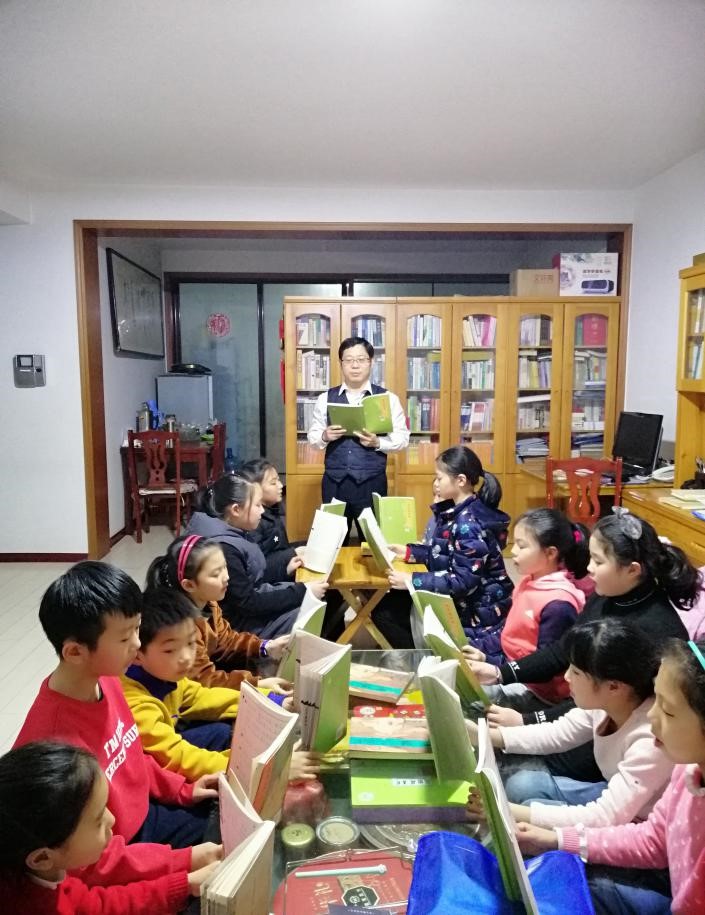 2003年,我創(chuàng)辦了公益性質(zhì)的“兒童國學(xué)經(jīng)典誦讀班”,利用周末晚上和其他空余時間,上課2100多節(jié),先后輔導(dǎo)100多位孩子誦讀四書五經(jīng)、詩詞曲賦等國學(xué)經(jīng)典。這17年來,我搬過三次家,變動過三次工作單位,甚至有十多年是從事加班加點(diǎn)為常態(tài)的研究室工作,但是我都堅(jiān)守不輟。17年來,我不僅分文未取,而且購置3000余冊圖書供孩子們隨時借閱,還自費(fèi)印制照片和影像,為孩子們錄下珍貴的成長資料。這些孩子,有的是小區(qū)居民,有的是外地來青打工創(chuàng)業(yè)家庭的子女,有的是低保戶或貧困家庭的子女,有的是殘疾人,我都一視同仁,傾心培育。