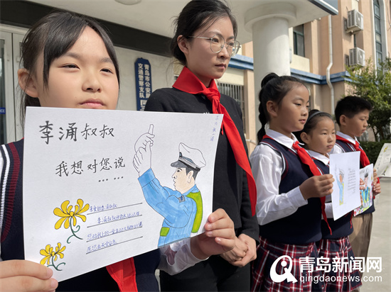 在李涌曾經(jīng)開展交通安全授課的膠州市瑞華小學(xué),老師和同學(xué)們深情回憶了李涌警官給他們帶來的精彩的交通安全授課,同學(xué)們也精心制作了繪畫作品,以此表達(dá)對英雄的懷念和致敬?!皟赡昵埃覄偵弦荒昙壍臅r候,李涌叔叔曾給我們上過一節(jié)安全課,他的教導(dǎo)一直提醒著我們安全出行記心間。”學(xué)生王?,幷f。