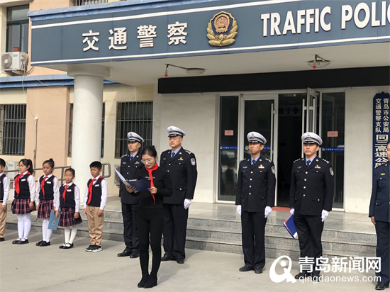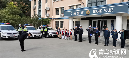 10月20日上午,在青島交警同三高速公路大隊駐地,“向李涌學(xué)習(xí)致敬活動暨巡邏急救包發(fā)放儀式”舉行?;顒觾x式上,李涌的女兒李圣來到現(xiàn)場,和大隊民警代表、膠州路政管理處代表、青島瑞華小學(xué)師生代表們一起緬懷英雄,向英雄致敬!在場的同三高速大隊的民輔警們向英雄的女兒李圣敬禮,青島瑞華小學(xué)的學(xué)生們?yōu)槔钍狭缩r艷的紅領(lǐng)巾,向英雄的女兒致以崇高的敬禮。