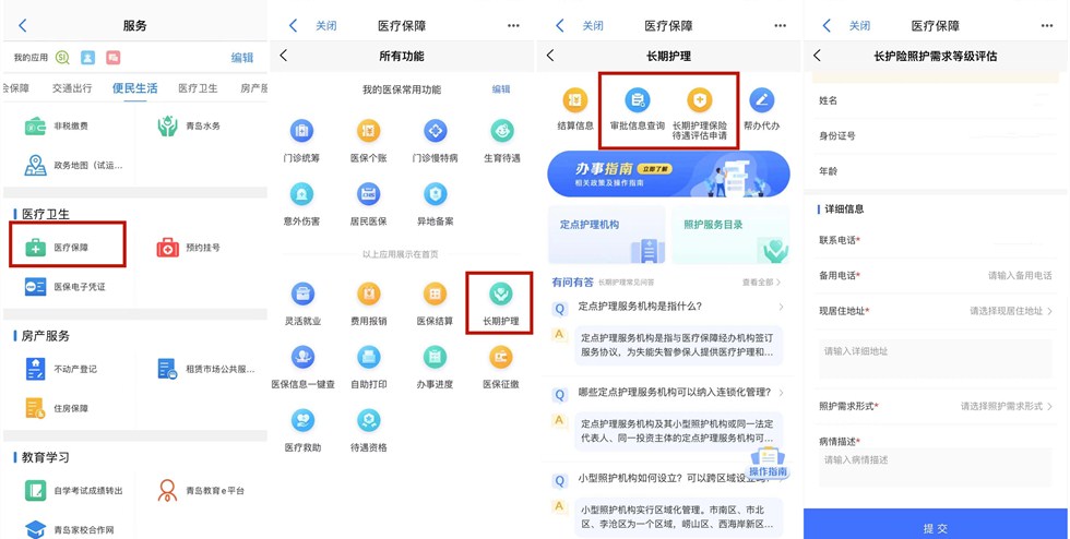 青島新聞網(wǎng)12月7日訊 老年人隨著年齡增長(zhǎng)疾病增多、身體機(jī)能退化,許多老年人失去生活自理能力,需要相應(yīng)的醫(yī)療護(hù)理。長(zhǎng)期護(hù)理保險(xiǎn)是一項(xiàng)創(chuàng)新性制度,它保障的是失能人員基本生活照料及相關(guān)的醫(yī)療護(hù)理服務(wù)。為方便老年群體及家屬申請(qǐng),“愛山東·青e辦”APP整合接入了青島醫(yī)保的長(zhǎng)期護(hù)理保險(xiǎn)待遇評(píng)估掌上申報(bào)渠道,讓老人及家屬足不出戶即可便捷辦事。