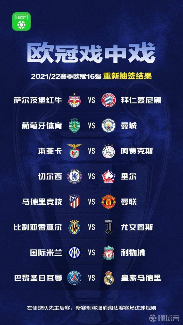 歐冠1/8決賽抽簽結果:巴黎對陣皇馬,馬競遭遇曼聯(lián)