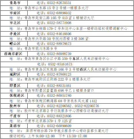 青島市根治欠薪冬季專項行動集中聯(lián)合接訪窗口電話、地址