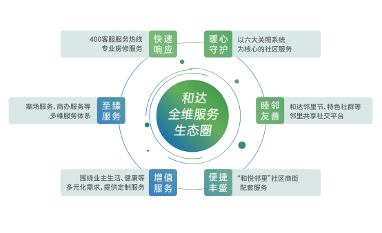 2022年,和達(dá)集團(tuán)繼續(xù)聚焦全維服務(wù)生態(tài)圈構(gòu)建之道,通過“物業(yè)服務(wù)煥新”、“社群服務(wù)煥新”、“社區(qū)商業(yè)服務(wù)煥新”三大維度,構(gòu)建從售場到入住,從生活服務(wù)到睦鄰友好的全維服務(wù)體系。