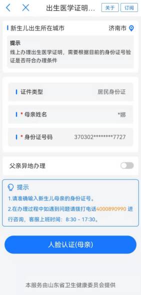 通過(guò)“愛(ài)山東”的【出生醫(yī)學(xué)證明辦理】服務(wù),父母可以為寶寶線上申領(lǐng)出生醫(yī)學(xué)證明,紙質(zhì)證明快遞到家,足不出戶就可以為孩子拿到“人生第一證”。