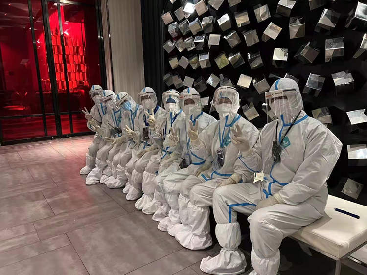 接到隔離任務(wù),桔子水晶青島五四廣場(chǎng)海景酒店的前廳部主動(dòng)請(qǐng)纓,報(bào)名6人組成第一梯隊(duì)酒店前臺(tái)紅區(qū)戰(zhàn)隊(duì),奮戰(zhàn)在隔離的最前沿。