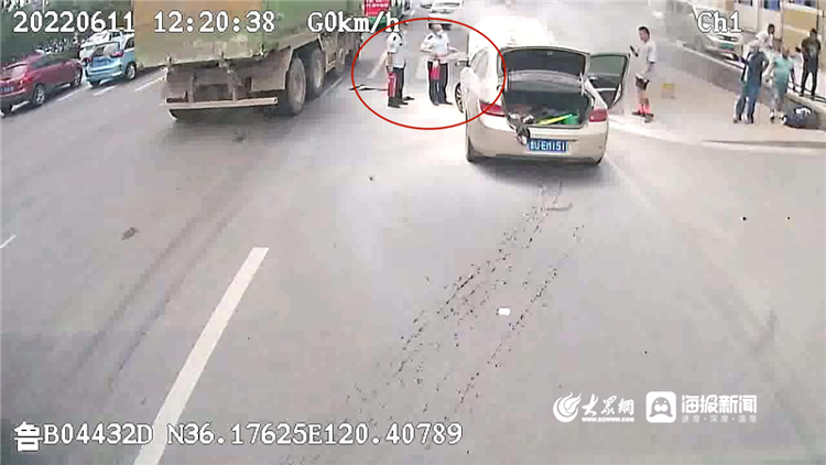 繁華路段私家車突然著火 青島公交駕駛員接力撲滅
