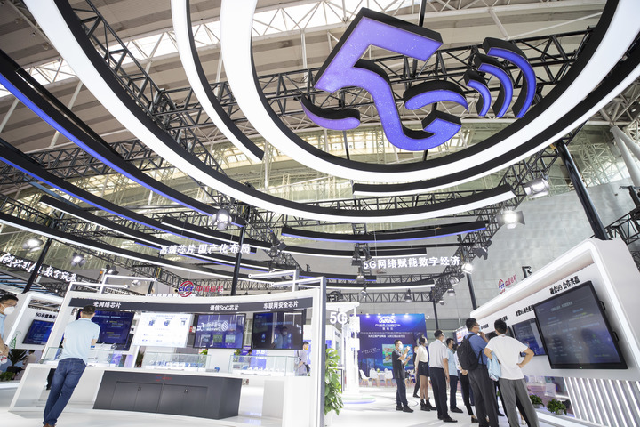 8月10日,2022世界5G大會(huì)在黑龍江省哈爾濱市開(kāi)幕。工作人員在布展。新華社記者 張濤 攝