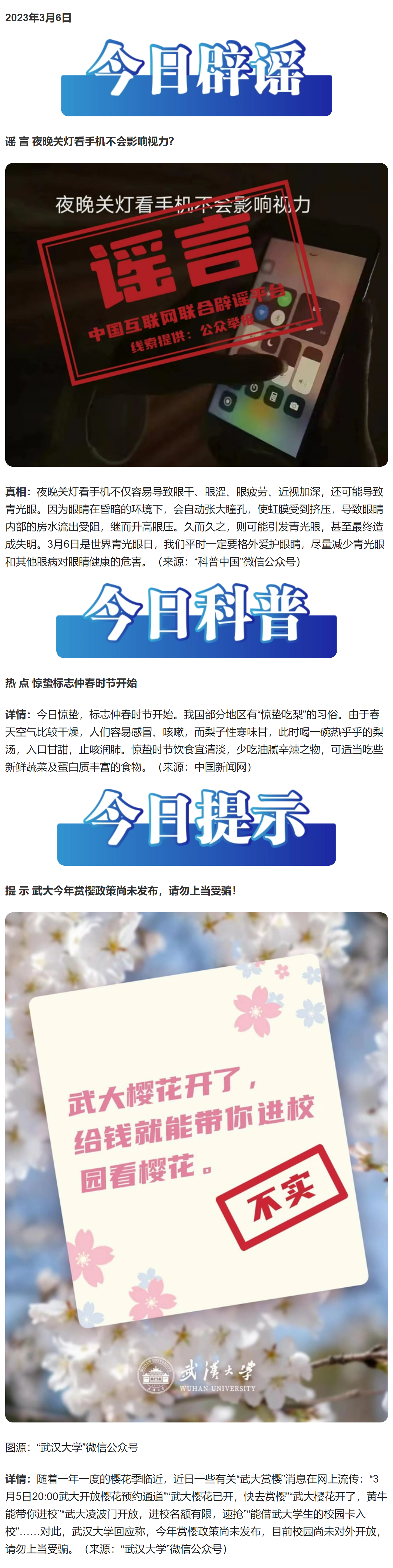 今日辟謠(2023年3月6日)