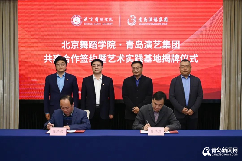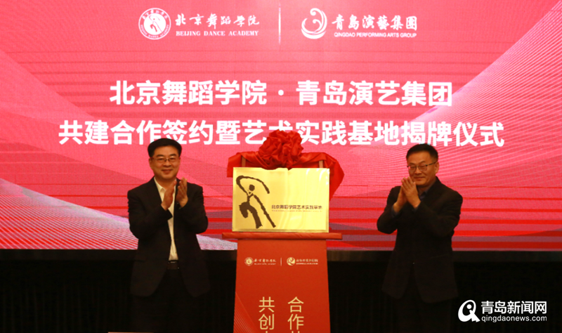 北京舞蹈學(xué)院黨委書記巴圖,青島演藝集團(tuán)黨委書記、董事長、總經(jīng)理姜乃鵬為“北舞青島藝術(shù)實(shí)踐基地”進(jìn)行了揭牌。北京舞蹈學(xué)院藝術(shù)實(shí)踐辦公室主任張海君,青島市歌舞劇院黨總支書記、董事長白潔代表雙方進(jìn)行現(xiàn)場簽約。