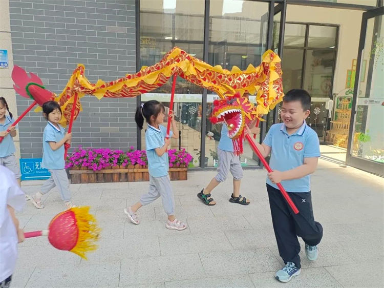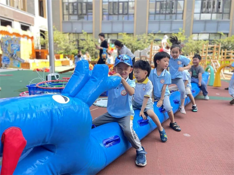 此次活動恰逢幼兒園開展“粽葉飄香”端午節(jié)主題活動,在戶外,孩子們很快融入大哥哥大姐姐的游戲中,舞龍、劃旱船、搭建龍舟、玩沙玩水、體能游戲……