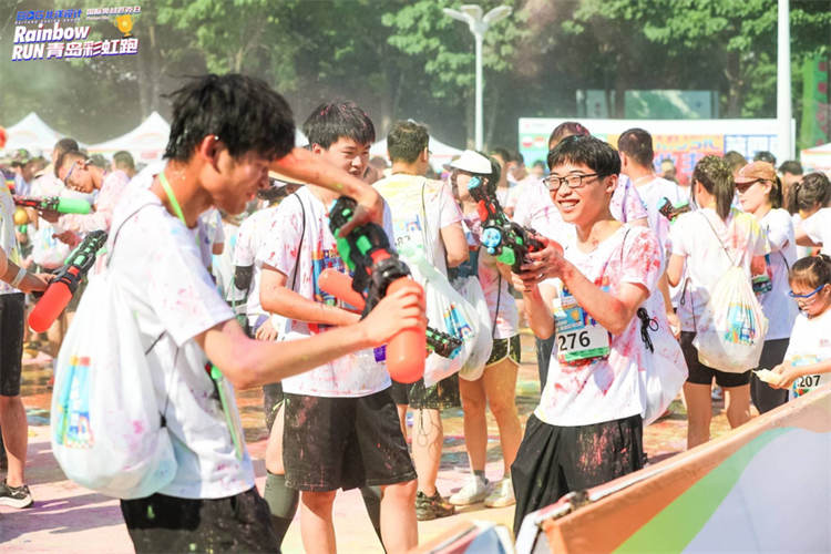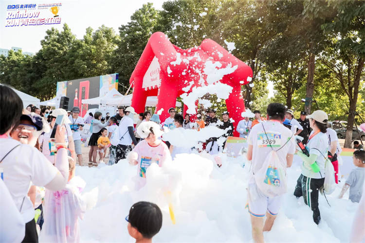 伴隨著動(dòng)感的音樂(lè),水槍大戰(zhàn)+電音派對(duì)同時(shí)開(kāi)啟,DJ與舞者帶領(lǐng)全場(chǎng)一起嗨翻這一刻,大家把彩色玉米粉同時(shí)拋向空中,彩色的粉末隨風(fēng)飛舞,吶喊與歡呼交織,色彩與青春碰撞,匯聚成一道道絢爛無(wú)比的彩虹人潮。參賽者還不忘拿起水槍互相噴射,有人更是被眾多人“圍攻”,頭發(fā)上、臉上都是不同的顏色,每個(gè)臉龐都像調(diào)色盤(pán)一樣繽紛生動(dòng)。更有巨型“泡泡槍”將超多白色泡沫噴向空中,瞬間把狂歡氣氛推向高潮。大人與小孩都在潔白細(xì)膩的泡沫里穿梭翻滾,歡樂(lè)的笑臉與笑聲連成片,千余人一起洗泡泡浴,這樣的體驗(yàn)可是非常難得的,相信這快樂(lè)又神奇的時(shí)刻將深深印在每個(gè)人的腦海里。