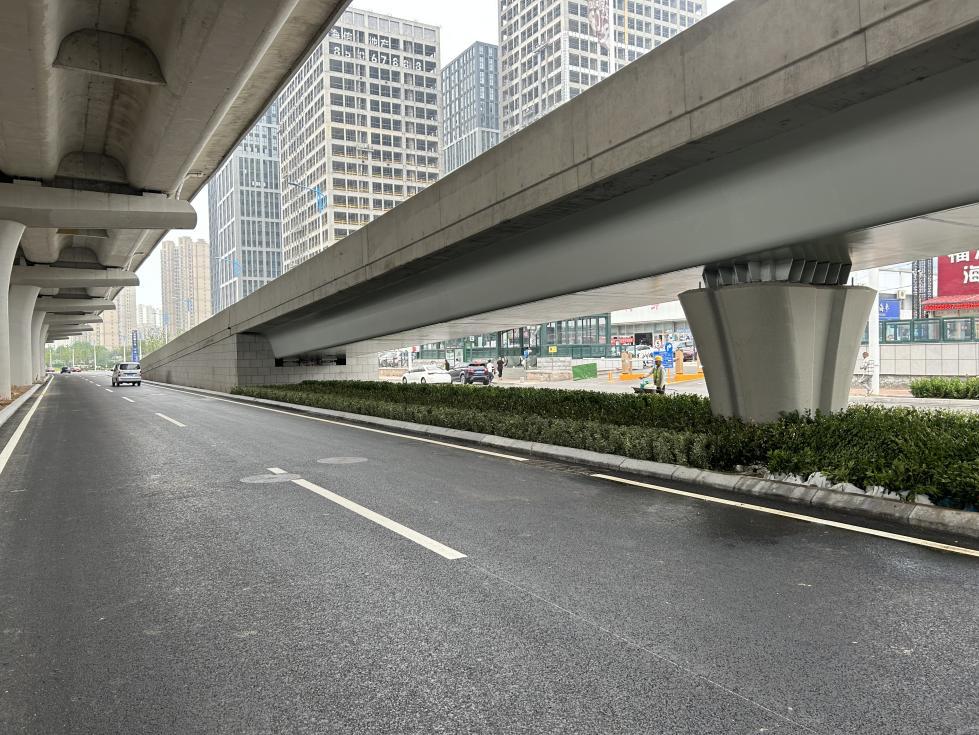 繼南半幅地下通道端午節(jié)前通車后,遼陽路快速路(福州路-海爾路段)工程橋下輔路全線瀝青攤鋪也于日前完成。自2022年年底主線橋通車后,青島地鐵第一建設(shè)分公司僅用6個(gè)月時(shí)間完成了匝道橋及2.5公里橋下輔路的施工,實(shí)現(xiàn)了遼陽路工程橋下輔路的順利貫通(下圖),比計(jì)劃通車時(shí)間提前了5個(gè)月。