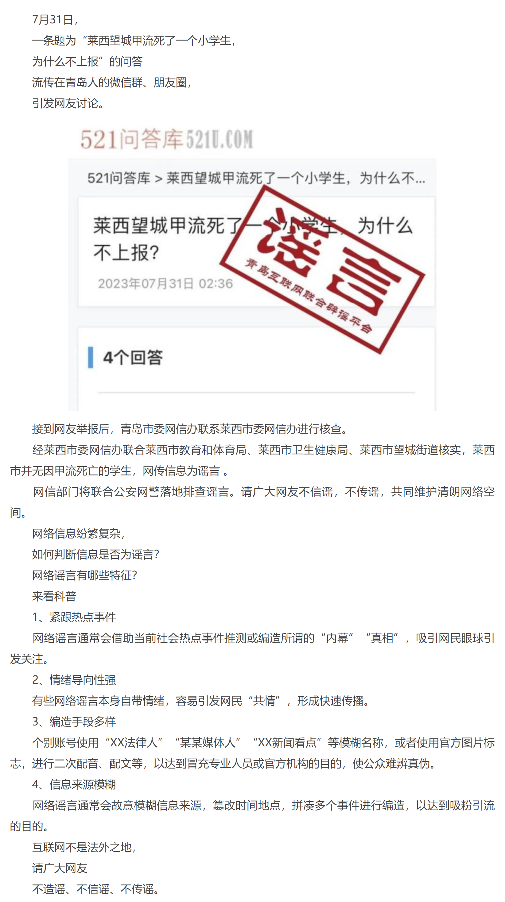 青島一地小學(xué)生因甲流死亡?官方辟謠