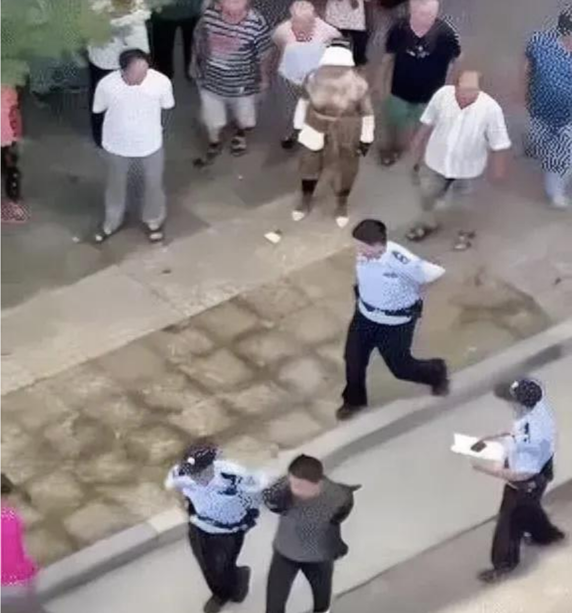 點開視頻后發(fā)現(xiàn),視頻中一名灰衣男子被警方控制帶至頂部標(biāo)有“0519”字樣的警車