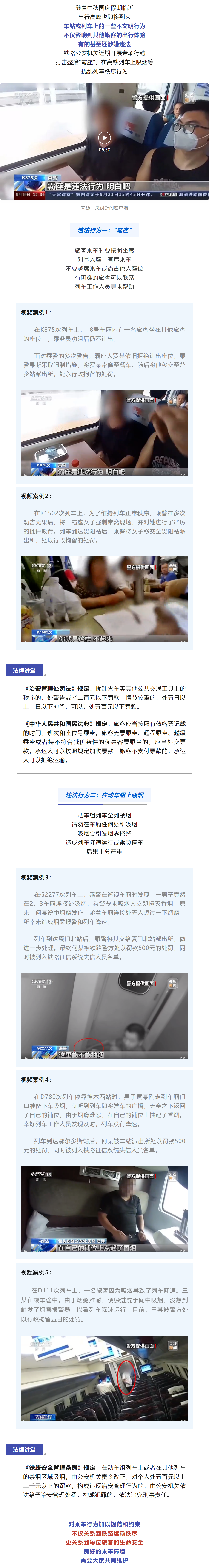 列車上這些行為,違法!