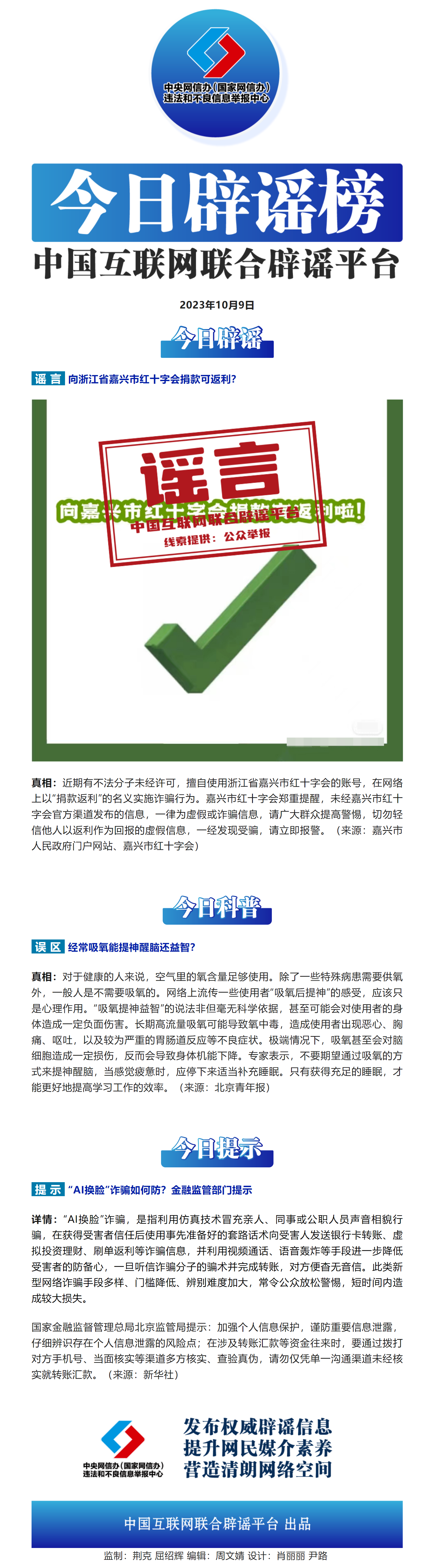 今日辟謠(2023年10月9日)