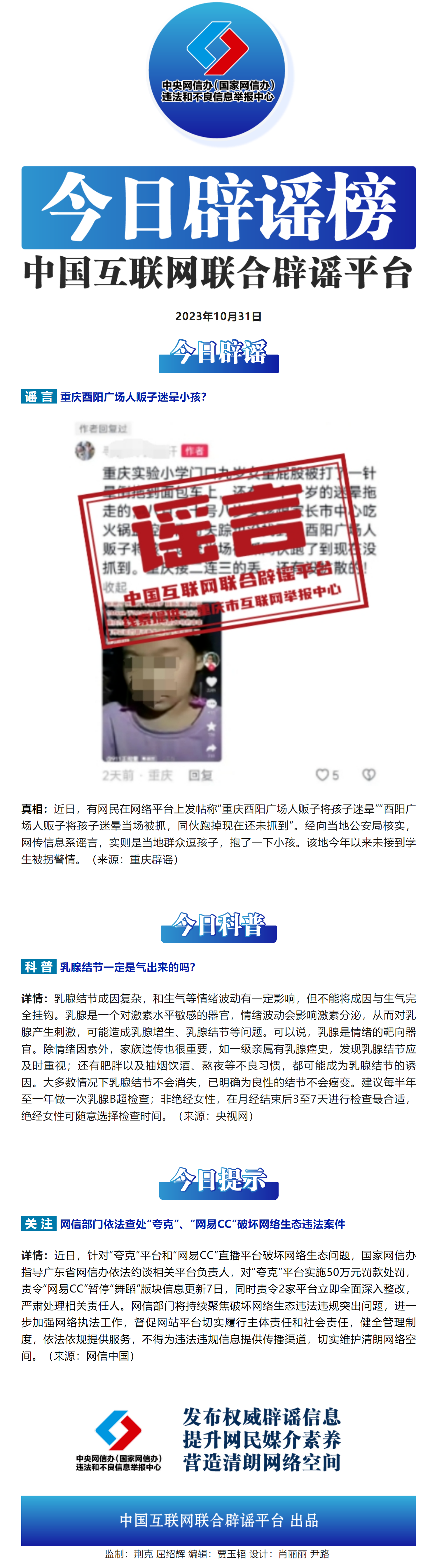 今日辟謠(2023年10月31日)