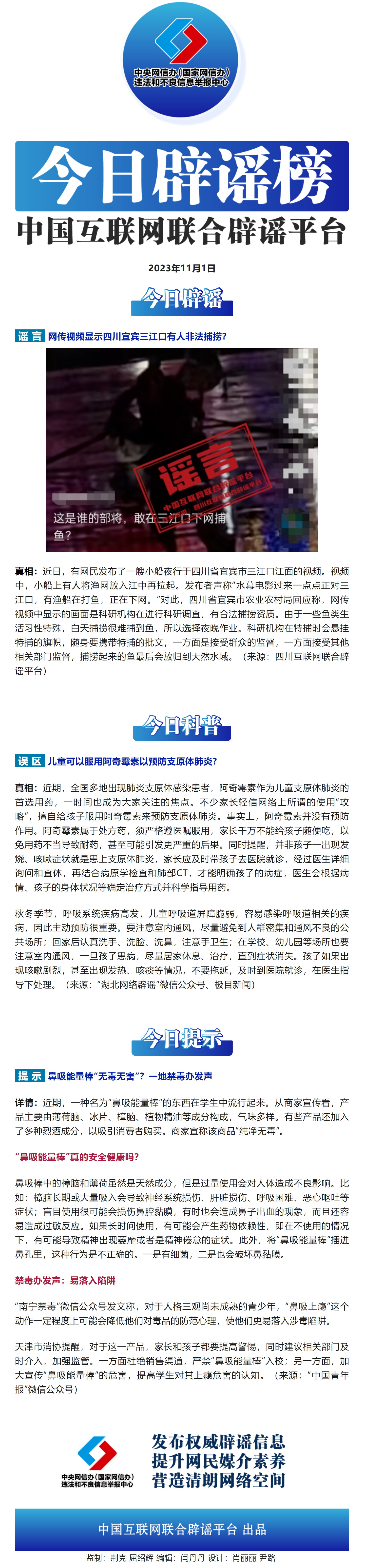 今日辟謠(2023年11月1日)