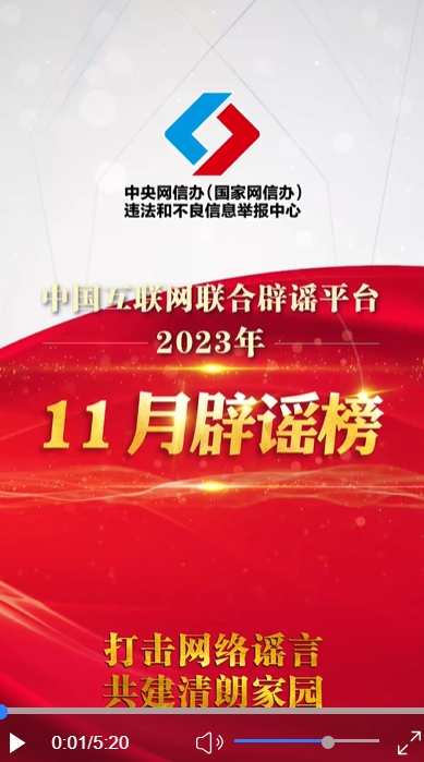 中國互聯(lián)網(wǎng)聯(lián)合辟謠平臺2023年11月辟謠榜