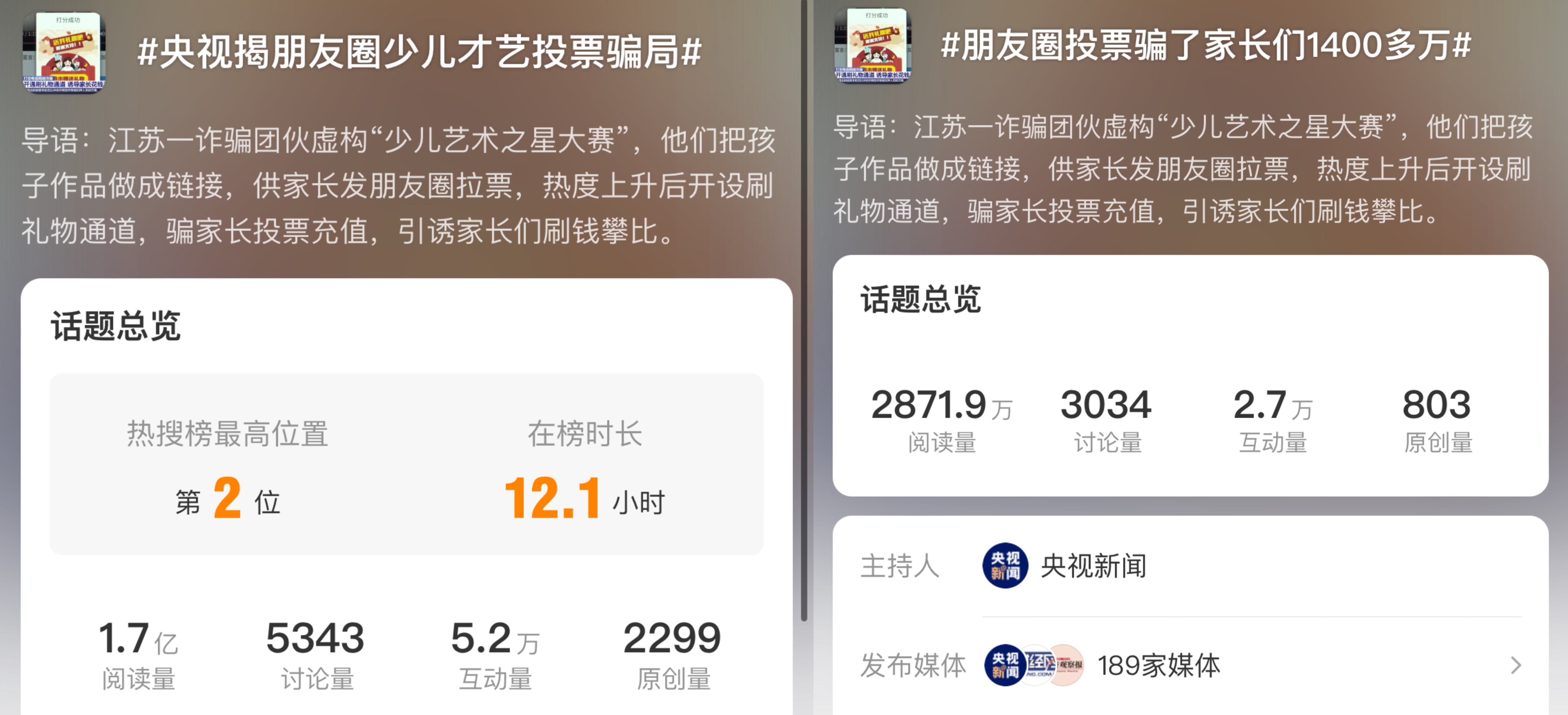 近些年,打著孩子教育、比賽旗號的新型騙局層出不窮,如近期央視曝光的“朋友圈少兒才藝投票騙局”同樣引發(fā)網(wǎng)友熱議。