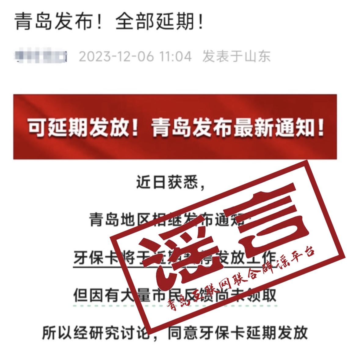 青島發(fā)布“牙保卡”?市醫(yī)保局辟謠:非官方發(fā)布
