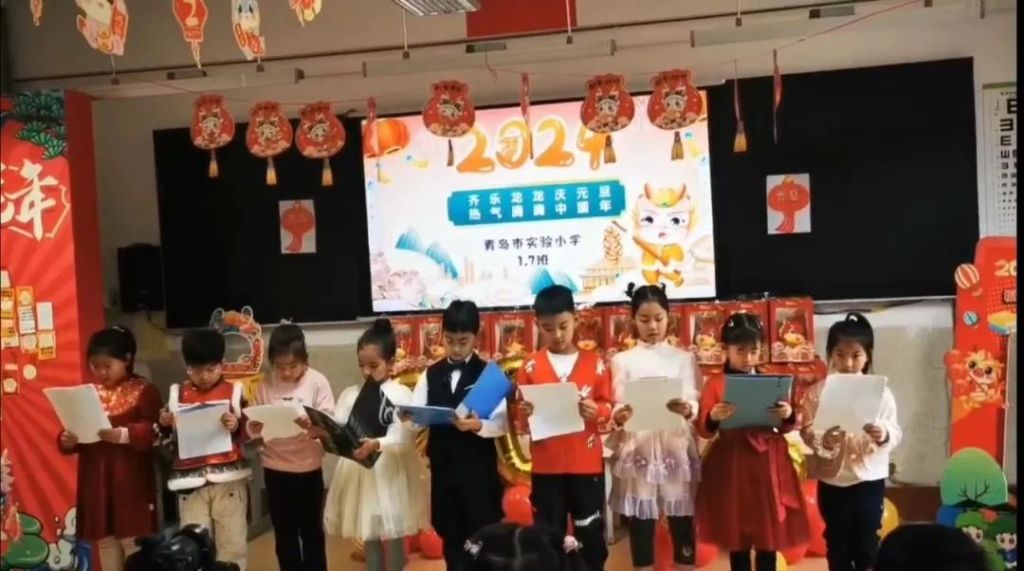 樹掛春花迎龍騰,人添新歲送兔走。為迎接2024年新年的到來,青島市實驗小學2023級彩虹七班開展了“‘龍’重登場”慶元旦活動。班級處處蕩漾著歡聲笑語,彷如一座等待探索的童話城堡。童趣橫溢的非遺實踐活動和藝光四溢的迎新文藝匯演交織成一場奇妙的盛典。